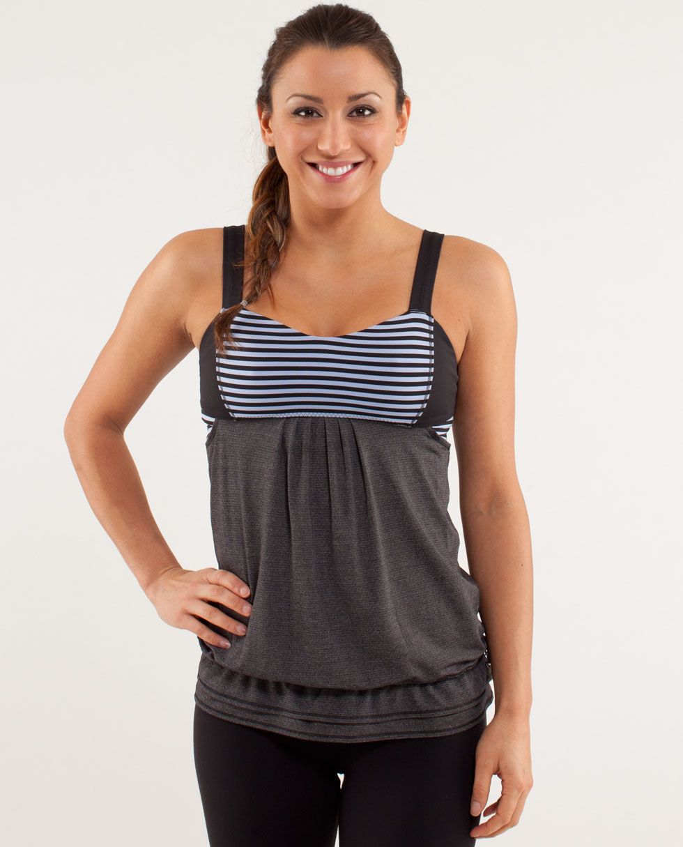 I have this tank, and several variations on the this style as well. Why I love it? Because it has a built in bra with great support, the straps don't dig into my shoulders, and the body had ample room to house a bursting midriff, or a toned tummy. The breathabilty of the fabric is exceptional, and the flow of the fabric is comfortable as well as accommodating to a full range of motion.